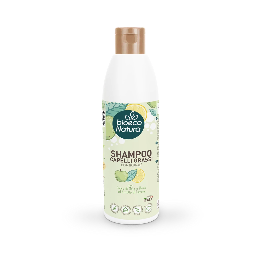 BioEcoNatura sampon zsíros hajra, mentalevél- és almalével, citrom kivonattal.
